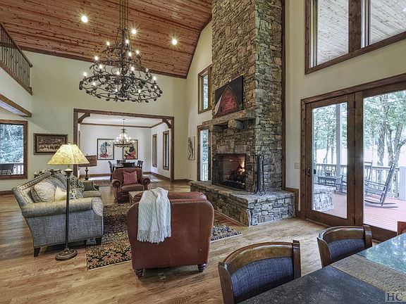 Welcome home to the Cullasaja Club. Pristine home recently updated including fresh paint throughout, newly added custom hardwood floors in the owner's bedroom, & new roof. Inside, the focal point is an open concept, great room reminiscent of a grand mountain lodge. You'll find high quality finishes such as tongue & groove ceiling with rustic chandelier, custom hardwood floors & a two story stone fireplace ... perfect for engaging the senses. Just off the great room, a chef's kitchen with high end appliances by Viking and Sub-Zero make preparing meals & staying engaged with family & friends easy. A generous sized covered deck offers views of the mountainside & the 15th fairway of the touted Arnold Palmer golf course. Another stone fireplace located deckside is certain to keep a chill at bay on a cool mountain night. Completing the main level, the owner's bedroom will pamper the owner with custom hardwood flooring, spacious walk-in closet, & luxurious en-suite bathroom. An elevated covered deck, just off the bedroom, is perfect for listening to nature with coffee in hand while you reflect on the day's beginning. One level up, you'll find a guest bedroom that rivals the owner's bedroom for luxury with 10 foot ceilings and luxurious en-suite bath. A loft area overlooking the grand fireplace below is perfect for an informal office for staying connected to the latest streaming entertainment or business happenings with the community's high speed internet service. On the lower level, a secondary living area & two bedrooms w/ ensuite baths are perfect for visits by extended family or a gathering of friends. For the golfer, an integrated cart garage makes for ease of access to the fairway & clubhouse. All of this just minutes away from the welcoming Cullasaja Club & its many amenities & exceptional dining. Highlands & Cashiers with their diverse recreation, shopping & dining options are an easy drive away. Fireplace Features: 2 or more