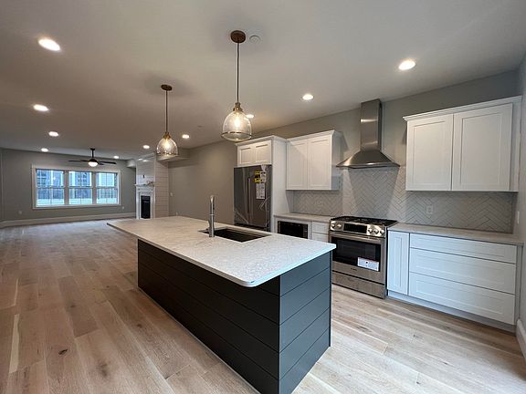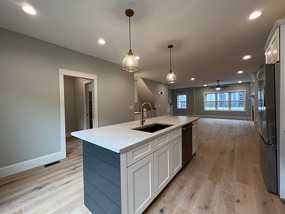 Unit 22 complete and available for a quick close! Enjoy life in Portsmouth’s vibrant West End in this new luxury townhome community steps to everything! With over 2,200 sf of living space, this spacious townhome features a two-car garage, three bedrooms plus bonus room suite, and beautiful finishes. The welcoming living level is a sweeping open layout, complemented by high ceilings, wide plank hardwood flooring, gas fireplace, and custom trim work. Sparkling kitchen featuring expansive island seating with quartz countertops, high end appliances, tile backslash, and an added wet bar perfect for entertaining. Glass doors open to a private 22’ deck, a lovely place to enjoy a morning cup of coffee or evening cocktail. The upper floor features three vaulted bedrooms each with hardwood flooring, including a generous master suite with great closet space, trim feature wall, and en-suite bath with custom tile shower and double vanity with quartz countertop. Two additional bedrooms, a full bath, and laundry on the upper level. The ground floor entry level of this townhome has a finished bonus room with great natural light and hardwood flooring, plus a full bath; an ideal space for a home office/gym/extra bedroom. Ample closets throughout, and two car garage with epoxy floor. All the space and storage of a home, but the low maintenance condo lifestyle in an unbeatable West End location steps from shopping and restaurants, easy access to major routes, and just 1 mile from Market Square.