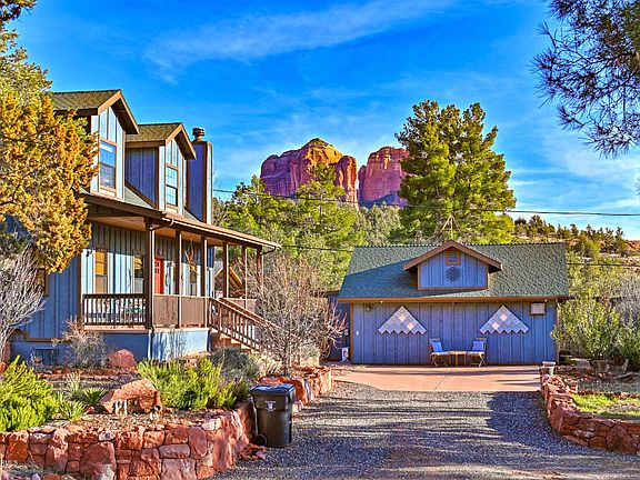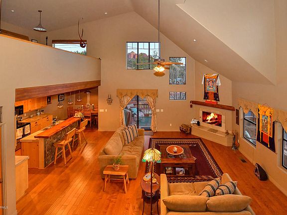 Modern Cottage Styled two story home with a detached workshop is beckoning! Can you hear it calling for that buyer who is looking for a one-of-a kind home designed with Craftsmen Characteristics including soaring 26 Foot ceilings etched with windows to enjoy the flow of Natural Light and Peek A Boo Red Rock Views. This beauty is a short stroll to miles of National Forest or a quick drive to the waters of Oak Creek and Red Rock Crossing making it the perfect refuge, 2nd home or AIRBNB possibility. Main home boasts an Open Concept living with hardwood and travertine floors, a Corner Wood Burning Fireplace, 4 bedrooms, 2 full baths, and 3 distinct outdoor porches to take in the sweet splendor called Sedona. There is even a loft for additional sleeping arrangements or a great place to read
