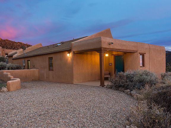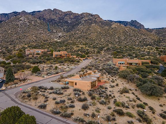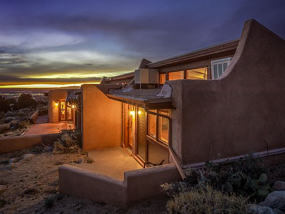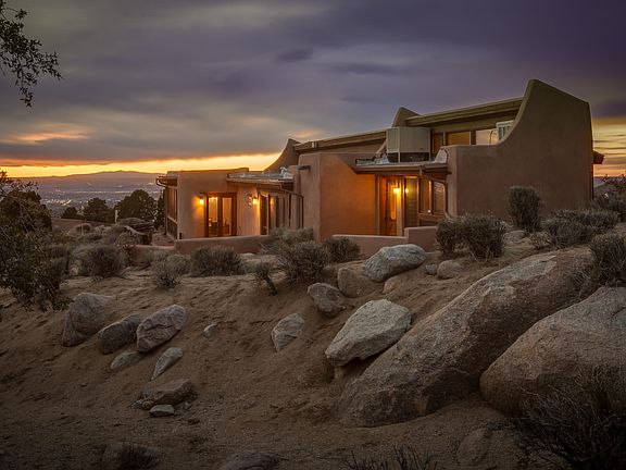 At the base of the majestic Sandia mountains, 200 feet away from national forest and tucked onto a large .8 acre lot is 50 Cedar Hill. The home blends beautifully into the traditional topography and surroundings. Upon entering you are greeted with a warm and welcoming southwest ambiance and rustic charm complete with trombe walls and brick floors throughout. The home has 3/4 bedrooms house plus a study. Flex spaces to fit many needs. The kitchen, open to the inviting living and dining spaces, is nicely laid out to making cooking a breeze. The outdoor living space boasts spectacular views of the mountains and panoramic views of the city....perfect spot to relax and unwind. Come experience of living amidst nature's grandeur and the home will forever hold a special place in your heart.