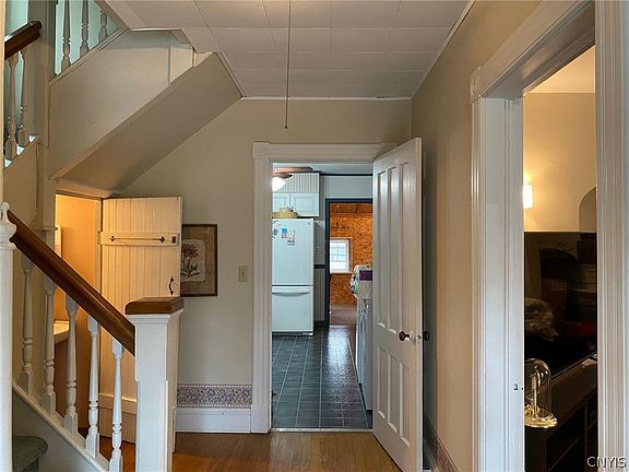 This 3 bedroom 1 1/2 bath Ilion Home is priced to sell. Enjoy summer nights on your nice front porch or bbq on you back patio area. This home features an entrance hall, living room, formal dining room all with beautiful hardwood floors, kitchen with appliances and plenty of cabinet space, plus 1/2 bath all on the first floor. Laundry is also located on the first floor. Upstairs you have 3 nice size bedrooms along with the full bath. There is a back mudroom off the kitchen great for a small sitting area or storage. Nice large basement great for additional storage. This home has an updated electric entrance, forced air gas furnace and it also comes with the air conditioning units. All buyers must be prequalified Fha, VA, USDA, Conv or cash