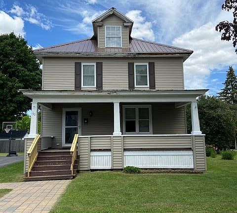 Enjoy small town living in this beautiful two-story home located in the Village of Rouses Point. Recent upgrades include a new metal roof, vinyl clad double pane windows and new vinyl siding. Step inside and experience the unique charm of this four bedroom, one bath home featuring original woodwork detail throughout, interior French doors, hardwood floors and custom built-ins. Second back staircase leads from the master bedroom to the Kitchen. The bathroom includes custom cabinets and a lot of natural light. The basement and attic provide for a ton of storage space. Relax on the covered front porch after a long day! This home is conveniently located within walking distance to restaurants, shops, the library, elementary school, golf course and parks. Take advantage of the new bike path! Minutes away from the Canadian border, bridge to Vermont, I-87 and of course historic Lake Champlain.