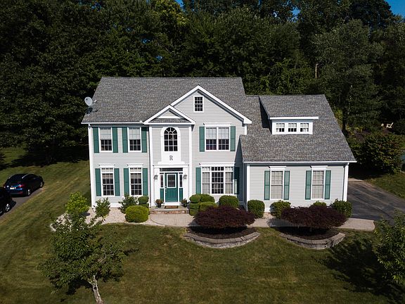 This custom designed colonial located in a quiet, private cul-de-sac with stunning views is a showcase property. The home is beautifully situated in a well appointed lot and slightly elevated adding to its already regal design. A warm and bright entryway welcomes you with the architectural details and custom flair that today's buyer is looking for in a home. If an open, bright and family friendly floor plan is what you're looking for -look no further. A coastal inspired color palette in the dining room is on trend and an inspiring space to entertain family and friends. The formal living room is now being used as a Billiards Room and showcases the playfulness of the home while still maintaining a cohesive design. It's a perfect place to unwind while the kids are watching Netflix as this room transitions into the family room. The window lined family room is adorned with custom built ins surrounding the fireplace. The open eat in kitchen with island, pantry and door to the backyard/cobblestone patio has the design elements and flow perfect for the home chef or BBQ master. The 2nd floor holds 4 nice sized bedrooms including a bright master suite with tray ceiling. There's a conveniently located 2nd staircase that just adds to the thoughtfulness the designer put into this home. The custom designed basement is a showcase space all year round. Does it get any better than having a space like this for your own family's enjoyment or to share with friends? Make your appointment today!!