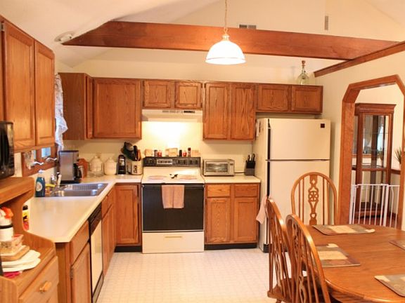 Well maintained Raised Ranch features sun lit Living Room with floor to ceiling fireplace, vaulted ceiling and exposed beams opens to large eat in kitchen ~ Master Bedroom with his and her closets ~ 1st floor laundry ~ Two full baths ~ Full Unfinished basement with built in work bench ~ Nice size yard for the kids , family pets or maybe add a garage bay or two. Only minutes to highway access.