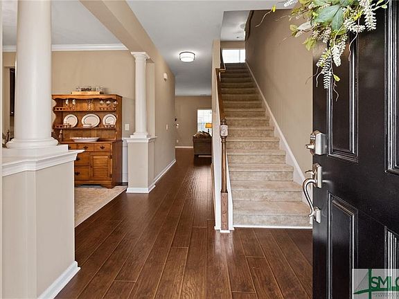 This beautiful home is located in the heart of Richmond Hill in the White Oak Village subdivision this home is conveniently located to Fort Stewart, Hunter Army Airfield and Savannah! A charming front porch welcomes you to this move in ready home with four spacious bedrooms, three and half baths and 2 car garage. This home features a formal dining room, large living area with gas fireplace, and a sunroom with lots of natural light. The kitchen has stainless appliances, 42" cabinets, walk in pantry, a breakfast bar and dining area. Upstairs, you will find a huge master bedroom with his and her closets, large master bath with dual vanities, separate garden tub and shower! Two additional bedrooms with walk in closets, guest bathroom, a second living area and laundry room are all located on the second floor. An additional guest bedroom and half bath are located on the main floor. Enjoy the outdoors patio overlooking the large backyard! This neighborhood offers pool and play ground.