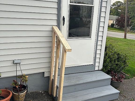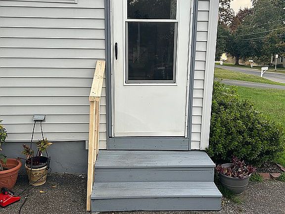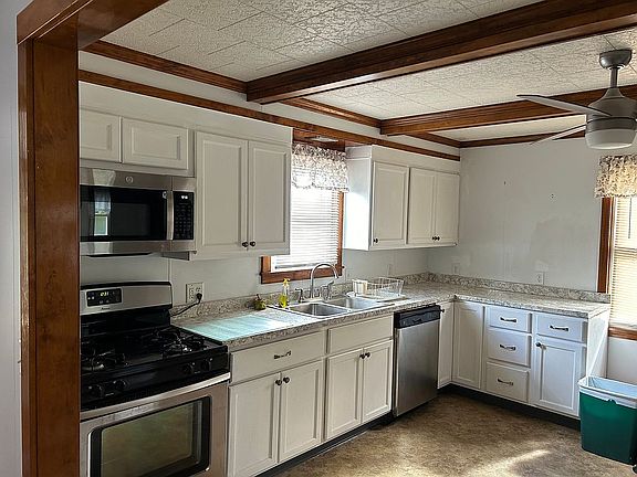 50 Chestnut St is a 986 square foot house on a 9,583 square foot lot with 2 bedrooms and 1 bathroom. Vinyl siding. Two new windows in den, new flooring, new refrigerator with ice and water, new microwave, new washer, new ceiling fans. First floor laundry. New kitchen cabinets and counters. Full basement. Storage shed. Spacious deck off den open to fenced in back yard. 2 car parking in front of house with blacktop driveway.