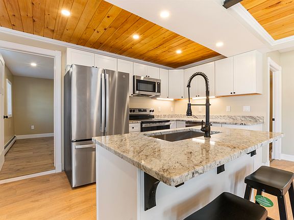Welcome to 50 Church Street. A fully rebuilt two story home offering modern finishes, thoughtful design, and true turn key living. Reconstructed from the studs up in 2024 & 2025 with new electrical, plumbing, heating, windows, roofing, flooring, kitchen, and baths, this home delivers the comfort and predictability of new construction with an in town location. The main level features single level living with a bright open kitchen, granite countertops, an island, and quality fixtures throughout. A private primary suite with a walk in shower, a cozy living area, laundry, and a half bath complete the first floor. Upstairs, you’ll find three additional bedrooms, a full bath, and a spacious bonus living room with direct access to a balcony offering mountain views. The lot is designed for low maintenance living and is ideal for anyone who prefers interior space, modern upgrades, and walkable convenience. Enjoy direct ATV access, high speed fiber internet, and close proximity to schools, shops, parks, and local amenities. A fully updated home in a location that supports both everyday comfort and year round North Country recreation.