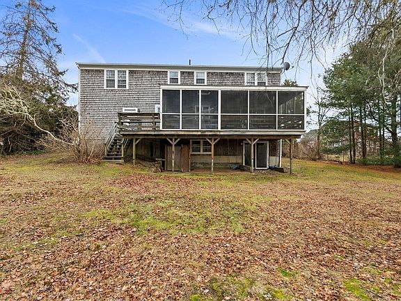 Conveniently located less than a five-minute drive to historic downtown Hyannis and multiple beaches with one extra minute to get to the ferry, the breathtaking waterview on this 0.42-acre lot is a tranquil haven for this 4 bed 3 bath 1600+ sqft home. Nestled in the privacy of trees that offer a firework display of colors in Fall, enjoy the expansive backyard, including an outdoor shower, and immerse yourself in stunning Simmons Pond from your dock (great for small boat!). Step onto glowing hardwood floors with sunlight pouring in, highlighting a gorgeous brick fireplace and custom built-in. The galley kitchen boasts bright cabinetry, granite countertops, stainless steel appliances, and a deep sink with access to the enclosed deck! Enjoy 4 spacious bedrooms with an extra generous master bedroom with two walk-in closets and skylights for extra light. Dive into 3 beautifully updated spa-like bathrooms and plenty of extra room, including a walkout basement.