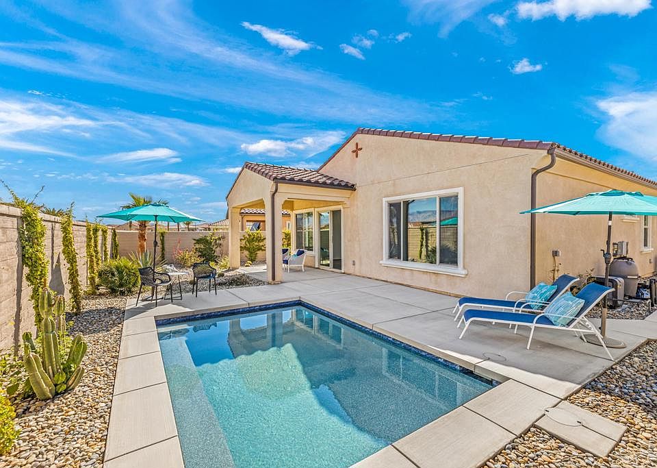 Year-around or seasonal, this FABULOUS 2BD, 2BA + den feels JUST RIGHT! A wonderful ''sense of place'' sums it up! Del Webb Rancho Mirage's ''Solitude'' plan built in 2021 features a chef's kitchen with flawless finishes including granite ''waterfall'' countertop atop the island. Modern lighting (recessed, under counter, and pendant) in place. Attention to detail is a theme. French doors, a mix of wood and glass, open to the den where clerestory windows work their MAGIC. En suite primary enjoys views to the pool or ''spool'' as some would call it. Easy to heat in the wintertime and just the perfect size for this walled + private backyard. Large walk-in closet and separate vanities are more of what we enjoy about this space. Laundry room features built-in cabinet and solar tube allowing lots of natural light for this interior space. Paid rooftop solar in place. The benefits of modern construction are noteworthy in a property like this one. Del Webb RM is an amenity-rich 55+ community in one of the desert's most desirable neighborhoods. The best of Palm Desert and Palm Springs is a short hop away. Enjoy resort style pools, fitness center, tennis, bocce ball, pickleball, virtual golf, putting green, walking trails. Low HOA fees relative to the rest of 92270! Enjoy it all!