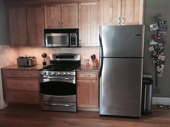 Townhouse style - side by side duplex - freshly painted with updated colors (not shown in all photos) Updated, open floor plan, 3 levels + unfinished basement storage 1st floor (hardwood, tile) - kitchen, dining room, living room + bath with jetted tub/shower 2nd floor (carpet) - 2 bedrooms + 1 bath with shower 3rd floor (carpet) - 1 bedroom *Heat - gas - single zone - forced hot air *Central AC *Washer/dryer (gas) hook up in basement *Off street parking 3 cars First, last and security required credit and background check with application No pets/no smoking Owner to pay water, no pets/smoking indoors or out. heat/hot water - gas last month's rent due at lease signing