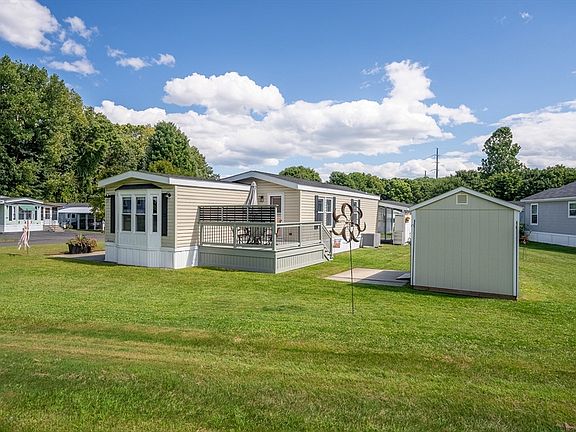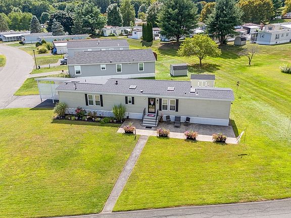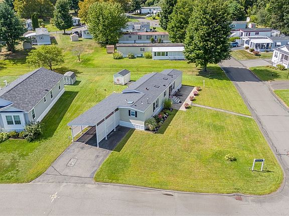 Easy Living Can Be Yours in this beautifully updated 2-bedroom, 2-bath manufactured home found in a most desirable 55+ community at Brush Hill with the added convenience of a carport, new shed & Much More! You'll enjoy a modern lifestyle boasting a fully renovated kitchen featuring granite counters, new sleek shaker cabinets & brand-new high-end Samsung appliances. The Kitchen is open to an inviting Din Rm w/Built-In Cabinets (used as an office) is open to the spacious Great Rm w/Cathedral Ceilings w/access to the NEW Deck. Plus a front patio for relaxing. A peaceful retreat is the renovated MBedrm  w/Plenty of Closet Space & Stylish Updated Full Bath w/Double Sink Vanity & NEW Shower. You'll also find a 2nd Bedroom & Updated full Bath. Additional improvements APO: New Roof, Skylights & Trendy Laminate Flooring throughout, central air, forced hot air gas heat & a New gas hot water tank along w/easy highway access & close to all your needs! Here's Downsizing Made Right & Effortless.