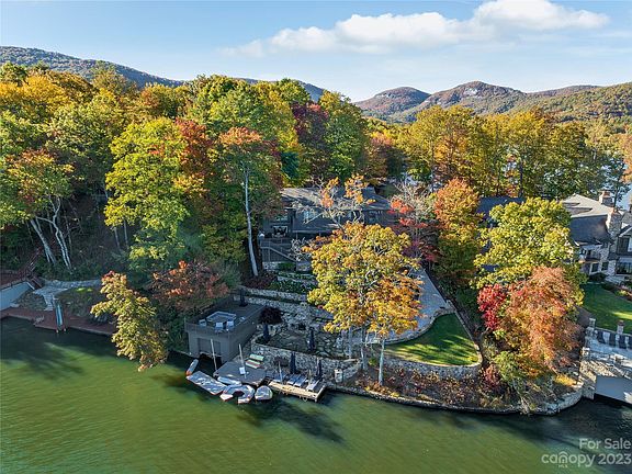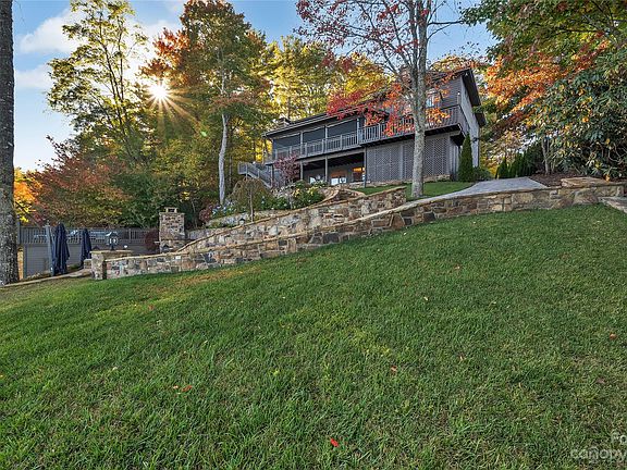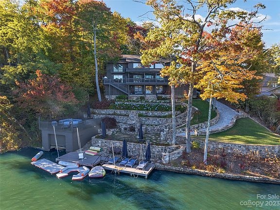 One of Lake Toxaway's most beautiful and spacious homes, this stunning, move-in ready 4BR/5.5BA home is situated on one of the lake's most magnificent sites with a dramatic lake view and very close to the Lake Toxaway Country Club, Greystone Inn, Marina, and all amenities. This home is newly renovated including interior and exterior paint, roof, gutters, wall coverings, flooring, paver driveway and cart path from the home to the lake, and magazine quality interior and exterior lighting. The primary suite on the main level features two bathrooms and closets, and other suites offer guests a resort quality experience with all suites featuring exquisite lake views. The outdoor entertaining and recreation space of this home are superb including a beautiful stone fireplace and seating area overlooking the lake, enlarged dock space, outdoor sundeck above the boathouse, and extensive outdoor covered and open porches including an outdoor kitchen. This legacy home is a rare and must see.