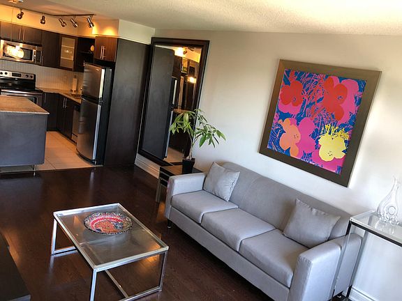 Fully furnished AND equipped 1 Bed+ 1 Den+ 1 Bath. All you need is your clothes, everything else is ready for you. **Location, Location, Location Situated in the heart of downtown Markham in one of the city's newer, exclusive communities "The Majestic Court" - this private 1br/1bath w/den (fully furnished and equipped) luxury condominium is centrally located,steps to Unionville High School, across from Markham Town Center,walking distance to No Frills, Scotia Bank,HSBC,Milestones Restuarant,McDonald's,Shoppers Drug Mart,Pizza Pizza , First Markham Place, The Home Depot and Cineplex Odeon ,404/407 and Viva/YRT. Unit is beautifully designed by Interior Designer with luxury finishes and furniture. Excellent arrangement for those relocating or in transition. Represented by Owner. - 24 hour concierge - Luxury condo with granite countertops and hardwood finishes throughout - Spacious high end gourmet chef's kitchen open to living room ideal for entertaining w/bar seating at island and stainless steel appliances. -Fully equipped with utensils, cutlery, small appliances and other household necessities. - Large Den can be used as personal office or 2nd bedroom - Open Patio for seating and lounging - Indoor washer & dryer - One assigned parking space in building's gated garage - Unit faces Zen park ,amenities include- Swimming pool,Gym, Steam,Sauna,Movie theatre,Billiards and table tennis room,Library with Wi-Fi, Rooftop terrace with BBQs and Cards Room. One-month security deposit,credit check and references required. CONTACT DETAILS This listing is exclusively represented by owner. Please contact owner for more details. Available Date: 1st July, Property Location: 50 Clegg Road, Markham. ON L6G 0C6 Features Bedrooms: 1 plus Den Bathrooms: 1 Square Footage: 780 Year Built: 2007 School District: Unionville High School
