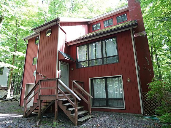 Spacious contemporary home nestled on a beautiful wood lot and located in the award winning community, The Hideout! $ bedrooms, 2.5 bathrooms and over 2600 square feet of space! A war, welcoming open floor plan greats you as you enter the home, a spacious sunroom with magnificent wooded views off the back, and a screened porch below I might add! Contents and furnishings included with the sale! This home really has everything you would look for in your Pocono retreat! Fireplace, sunroom, screened porch, wooded lot and close to the golf course, fitness center, restaurant and pub!