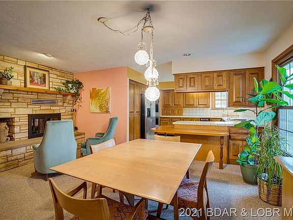 This is a Great Opportunity to own a home in town with all the conveniences of living in Camdenton. This 3 bedroom 3 bathroom home sits on a large Lot with a Circle Drive and plenty of Parking. The spacious Living Room has a see-thru Wood Burning Fireplace which is also accessible to the Dining Room. The Kitchen and Dining Room are open with Custom Cabinets, Breakfast Bar, Pantry with pull out Drawers, Double Wall Oven and Top Stove. The large Master Bedroom/Bath has double Closets, Linen Closet and Walk-In Shower. There is a nice climate controlled Sunroom with built-in Bookcases, you're sure to enjoy all the natural light. The 3rd bedroom also features a Half Bath and has Washer/Dryer Hookups if you prefer the laundry on the main level over the large Laundry/Utility Room in the Basement. The home has a great retro vibe or you could do a little updating and give this home your own touches!! There is a 1-Car attached Garage, Storage Shed and Fenced Back Yard.