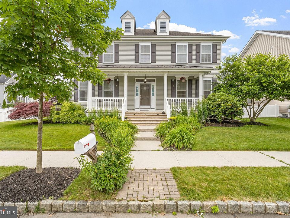 You've found it!! Beautiful Inside & Out is this Spacious North Facing Clean & Bright 4 Bedroom, 3.5 Bath Colonial with a Gorgeous Full Finished Basement nestled on a Premium North East Facing Corner Lot with a Front Porch that overlooks the Community's Pond w/Fountain Water Feature in Desirable Heritage of Chesterfield Development, Chesterfield Township. Enjoy TESLA Solar Panels keeping your energy bills remarkably low. Upon entering this stunning home, you're greeted by the Grand Two-Story Foyer featuring wrought iron single basket balusters that flow up the wood staircase with carpet accents. Gleaming hardwood floors flow throughout the Family Room & Dining Room areas. The Gourmet Kitchen with Breakfast Room offers granite countertops, spacious island, plenty of upgraded 42in cherry cabinetry with hardware, ceramic tile floors, tile backsplash, under cabinet lighting, stainless steel appliance package, granite top ledge for bar stool access & upgraded lighting that flows into the open concept Family Room that features a gas fireplace with wood mantle & marble around, surround sound plus plenty of windows that allow for natural light! Butler's Pantry with granite tops, stainless steel sink & tile backsplash offer an area for serving food for entertaining Family & Friends in the Dining Room area which contains crown molding, chair rail & upgraded chandelier. Living Room includes upgraded carpet & crown molding. 2nd Floor Master Suite boasts upgraded tray ceiling, recessed lights, ceiling fan with light, two large walk-in-closets (WIC), and private access to the ensuite master bathroom. Master Bath features newly upgraded tile stall shower with frameless glass door enclosures, soaking tub, tile stall shower, double vanities & ceramic tile flooring. Three other nicely sized Bedrooms are all in close proximity to the 2nd Full Hall Bathroom with tub/shower & Laundry Room with wet cloth sink which all flow from the stunning hardwood flooring within the hallway. Downstairs, the Full Finished Basement with 9ft-Ceilings offers even more room to grow!! Enjoy entertaining family and friends with the spacious bar setup featuring custom built-in 42in cherry cabinetry with vanity lighting, granite countertops, and refrigerator. Adjacent is the Game Room, prewired with sound system. Separate Home Theater Area is the ultimate setup to relax and unwind. Other Basement features include Home Gym, Full Bathroom for convenience, Egress window (emergency exit), as well as plenty of room for storage in utility room. Additional Home Features Include: 2-Car attached garage with openers and inside access, 2-Zone Heat/AC, professional landscaping & custom hardscape paver patio with lighting, and fully fenced in yard. Rest Easy - One Year America’s Preferred Home Warranty included for Buyer’s Peace of Mind! Great Location! Close to Major Highways, Public Transportation, Military Bases, Shopping & Restaurants! Don't wait, this one won't last!