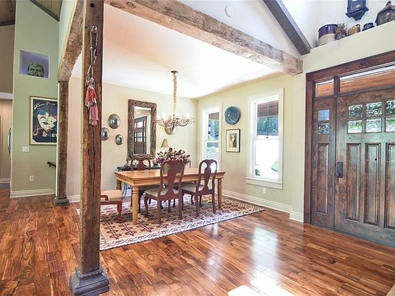 This Craftsman style home located in Keowee Key was built in 2013. Every material in this homes was selected with great care. The artist-owner's appreciation for beauty resonates throughout this home. The covered front porch features varnished wood ceilings and Ipe wood decking, and an arbor that enhances the entrance through custom, wood doors. The foyer leads into the Great Room with its corner fireplace, cathedral, beamed, wood ceiling, natural walnut hardwood floors, and floating shelves that easily accommodate a large screen television. 100-year-old barn beams define the dining room, and the kitchen features a custom walnut bar countertop and granite, counters, stainless appliances, and under counter lighting. The unique woods used throughout the main level include beams notched instead of nailed and pine capitals from an old home in Ashville which were inverted. Shaker Diamond soft close cabinets grace the kitchen. Walnut from an old courthouse tree located at Silva, NC was used in the kitchen as well as the Master Bathroom. The flooring choices incorporate slate, tile, travertine, and walnut on the main level and carpet and stained concrete on the lower level. This home was designed for comfort with functionality a major goal hence the open floor plan on the main level, screened-in porch, and an IPE deck. The main floor features the Great Room, dining-room, kitchen, Master Bedroom and bath, laundry room, pantry, and powder room. The attached 2-car garage also has plenty of storage space. The lower level has a shop that is used as an art studio and the wall separating the art studio from the rec room has concealed barn-wood door apparatus should somebody wish to combine this space. The shop has an air vacuuming system built-in although the buyer would have to add the bag and hose (notice the pipes from the ceiling). Dual zoned HVAC. Although the owner did not connect a propane tank, the house has gas piped for a gas range, propane gas logs, and grill. However, owner does not have a propane tank at the house. Gardens enhance both the front and back of this beautiful property. Possession after closing a minimum of one week as owner does not have family help. There is also a utility sink in the art room and the garage. There is no ground sprinkler system, just a drip system on the deck.