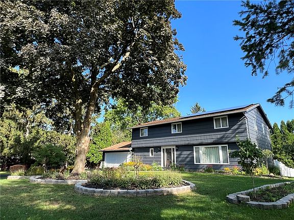 Brighton's highly prized neighborhood showcases this lovely full 5 bedroom Colonial home! The 5 bedrooms are LARGE not average, and the "principal" bedroom has its own full bathroom! This beautiful home features a spacious living room/dining room, gorgeous eat-in-kitchen and cozy family room with wood burning fireplace. New luxury flooring on the first floor and lower level, hardwoods, updated bathrooms, large lower-level recreation room makes a perfect entertainment area, media room, gym or all three! The solar panels are owned so get 100% of the electricity savings without a monthly payment. 2018 new furnace and hot water tank, 2023 new driveway, regal front entrance and exterior painting, high speed Greenlight internet, deck, and vinyl fenced in yard. Just look at the color explosion from the landscaping and flowers which bloom spring, summer and fall. Appliances are included, even the newer LG clothes washer and dryer! You will love the quick car or bike ride to the YMCA, Erie Canal Lock 32 Park, other parks and recreation facilities, restaurants and the Brighton 12 Corners. Just a few minutes to expressways, major employers, universities and attractions.
