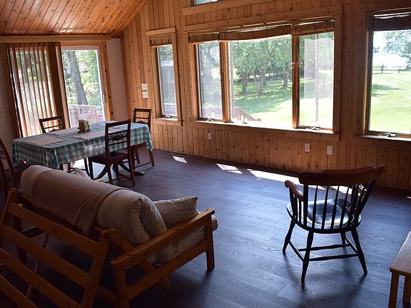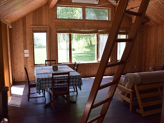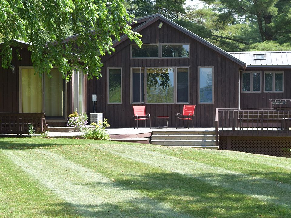 Much more than the bed/bath/square foot numbers suggest. This home sits on a large, grassy, tree-lined lot on the Lake Memphremagog bike path, which at this point is about 20 feet from the lake shore. It has a large deck on the lake side of the house, and a smaller deck down on the lake itself, suitable for attaching a boat dock. The bike path is a rails-to-trails area. The way it works is you are allowed to have a deck and/or dock on the lake, but do not own the (in this case narrow) area between the bike path and the lake, which is actually best of both worlds since you can have a house on the lake without paying lakefront property taxes. We spent many beautiful summers in this house, launching kayaks and fishing boats from the lower deck where we kept a removable dock. It has good cable internet so I was able to work from there looking out at the lake with the breeze coming in off the lake/mountains, and when I was done for the day, walk right down and kayak on the lake at sunset. The yard is huge and flat, tons of room for outdoor parties or volleyball etc. We also stayed year-round one year, and I remember walking out onto the frozen lake and ice-skating right there in front of the house. There's a pretty little Vermont Castings wood stove, plus an oil furnace, so we were cozy. Ski areas are nearby, for example Jay Peak, which you can see across the lake from the prpoerty, is 40 minutes away. The inside with its pine paneling, intersecting rooflines, and porthole-style window in the kitchen always had the feel of a ship to me. The 2-bed 1-bath specs understate the house a bit. In addition there is a family/tv room and a living room with a dining area to one side. There's also a very large sleeping loft nestled up high off of the living room. All of the rooms except the small bedroom and tv room look out at the lake. The laundry area is in the basement, and there's space for a workshop plus a lot of storage. The previous owner had the basement finished off with a couple more bedrooms and another bathroom, and then started a remodel, and got as far as stripping it down to the studs. The second bathroom in the basement is still there and working though it too is just stud walls. I bought this place when we lived in a city and it was a fantastic getaway. We now live in the mountains full-time so we don't really have a need for a second place to enjoy the outdoors anymore. Would be great as a summer/winter vacation place for someone from Boston (as I was), New York, or Montreal, with the added flexibility of using or renting it out as a year round home.