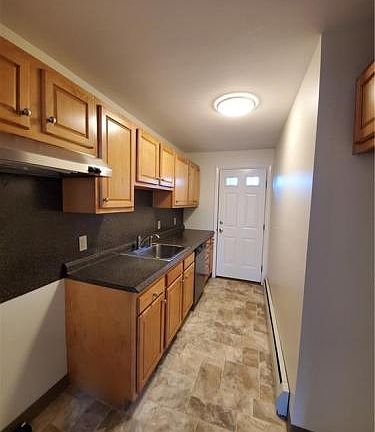 Adorable 1 bedroom, ranch style condo ready for occupancy. Living room with new carpeting and double closet. Galley style kitchen with plenty of counter space and cabinetry. Bedroom off of the living room has wall to wall new carpet and full bath. Heat and hot water included. Plenty of parking. Convenient location. Credit, background, eviction and criminal check required. 1st month and 2 months security required to move in. No pets, no smokers No laundry hookups in unit or on-site.