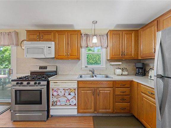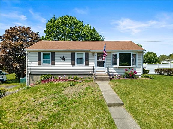 Welcome home to this lovely ranch located in East Woonsocket! This home offers a sunny eat in kitchen with a stainless steel oven and refrigerator, and sliding glass door out to the deck overlooking the expansive fully fenced back yard. There are 3 bedrooms on tbe first floor, one with laundry hook ups, as well as a family room with hardwood floors and full bath. The basement has been finished with a full bath, bedroom, and partial kitchen with a walkout to the patio. There is also a laundry storage, and mechanical room on the basement and a one car integral garage!