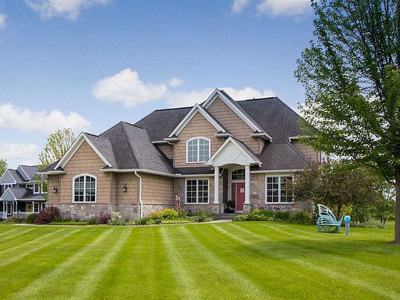 Quality Crafted Walnut Ridge Home on a cul-de-sac offering an expansive 1.05 acre lot with lawn irrigation system. This Stately Home offers crown molding, maple wood flooring at entry, dining room and kitchen. Granite counters and high-end appliances in the kitchen leading to a large family room with a sun room offering a double-sided fireplace. The stunning double staircase leads you 4 bedrooms and 3-bathrooms. There is a wet bar in the walkout lower level with a large family room.