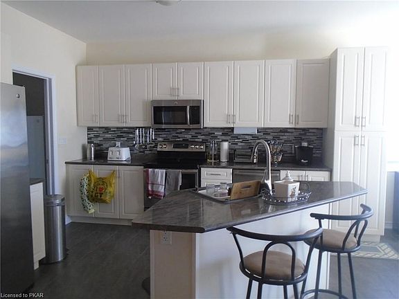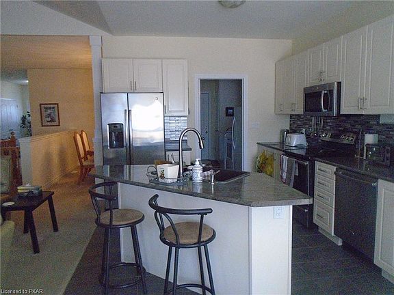 Hastings beauty, THE SOMERSET model, 1800 sq. feet of luxury, over 70,000 in builder upgrades, this home features 9 ft ceilings, gas fireplace, vaulted ceilings, pot lights, walk-out from dining area and master bedroom to party sized deck, fully fenced yard, two master suites with walk-in closets and full ensuite bathrooms, large partially finished lower level that includes bedroom and full bath, enjoy life close to the Trent Severn waterway.