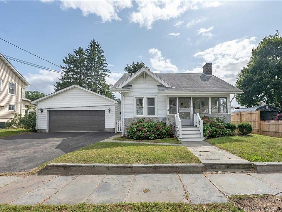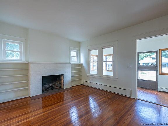Don't miss this sweet home that sits on a double lot and totally freshened up! Recently painted inside and out. Charming with lots of original woodwork, brick fireplace, built-ins and beautiful hardwood floors. Follow the bluestone walk to the garage, 2 car detached garage that leads into the spacious backyard. 2 bedrooms on the first floor for easy living. Dining room, flows into the living room and right out onto the enclosed & heated lovely front porch. Located between Uptown Kingston and the Rondout, Don't miss this one!