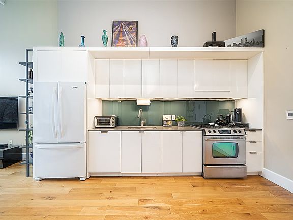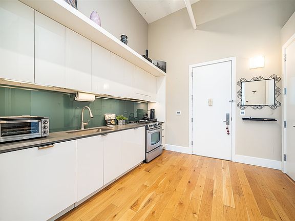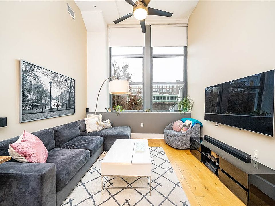 Modern, sleek factory style loft featuring 14ft ceilings, soaring 11ft windows and southern exposure that affords an abundance of sun light. Residence features wide plank oak floors, custom closets and built in shelving for extra storage, ceiling fans in the living room and bedroom, spa like bath, quartz counters, stackable washer/dryer, Bosch dishwasher and a new Whirlpool refrigerator. The Canco Lofts are the most desirable luxury condominium building located in close proximity to the Journal Square Path Train, Mana Contemporary Arts Center and convenient access to NYC. Building features over 10,000sf of amenities including 24 hour concierge service, an amazing fitness center, residents lounge and event space, business center, children's play room, movie screening room, indoor basketball court, patio areas including bbq area and a private shuttle to the Journal Square Path Train! Indoor garage parking is available for rent through building Management.
