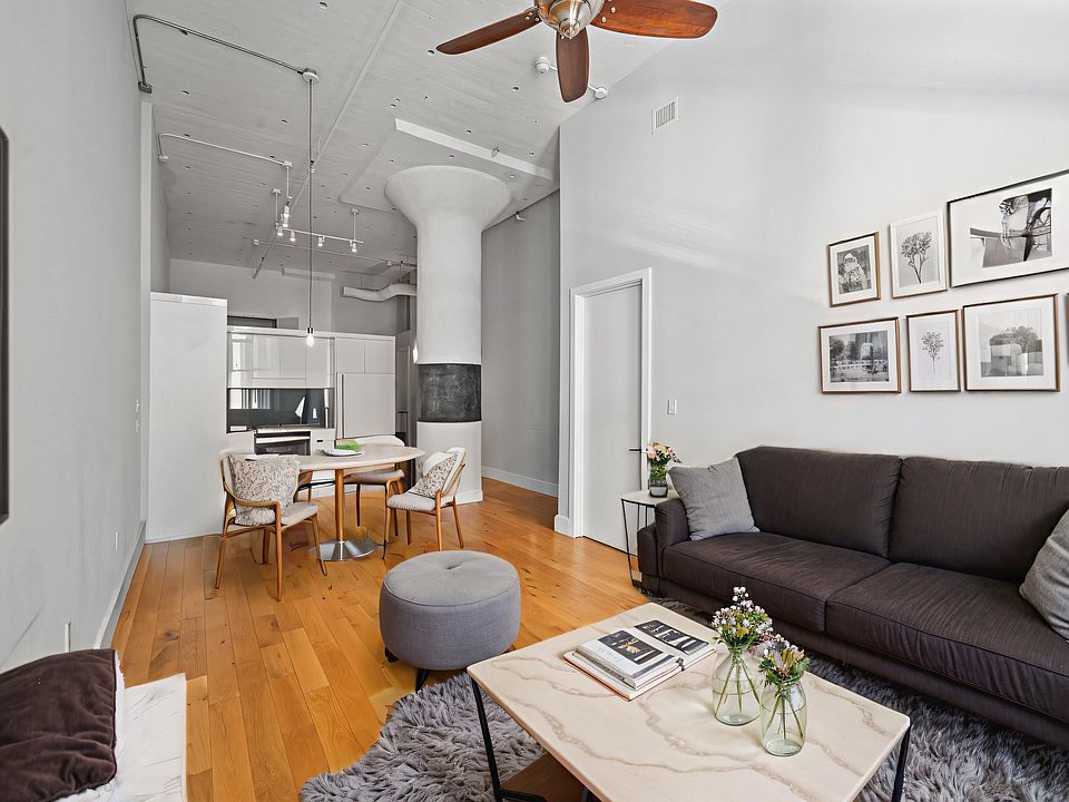 Live the loft dream at Canco Lofts soaring ceilings, factory-style windows, and a contemporary industrial finish package: white lacquer cabinetry, engineered-stone countertops, glass tile backsplash, and high-end stainless appliances including dishwasher. 5" white-oak plank floors run throughout, and multi-zone A/C & heat.
