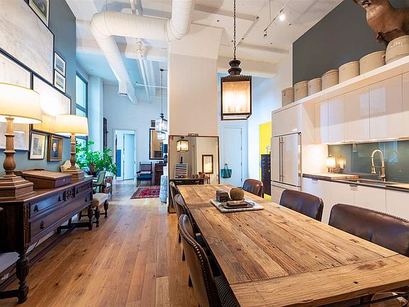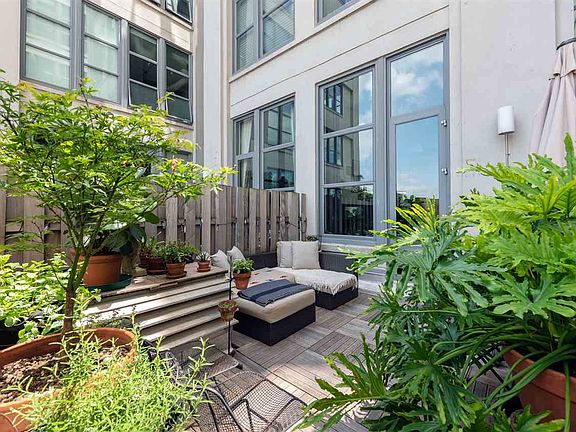 Situated in Canco Lofts, originally constructed in the 1920s for American Can Company and converted in 2008 to a full-service condominium, this voluminous loft features 1,379sf of living space, soaring 14ft ceilings throughout and impressive 11ft tall windows. The spacious primary bedroom suite boasts two exposures to North and East, a beautiful en-suite bathroom with a walk-in shower and double vanity, and a walk-in closet. The spacious terrace off the primary bedroom suite measures approximately 14' x 12' and is a beautiful private outdoor sanctuary to unwind and entertain. The open living, dining, and kitchen area is where the true volume of the loft is felt. The space extends further to reveal an additional full bathroom with a soaking tub and a large den that can also be used as a bedroom or a home office. Generous closets and storage spaces are found throughout the loft including a walk in pantry off the kitchen. The spectacular residence is further equipped with a stunning integrated kitchen, Central AC, washer & dryer and hardwood floors. A short distance to Journal Sq PATH, MANA Contemporary Museum, art studios, cafes and parks, the neighborhood in which Canco Lofts stands is filled with arts, culture, and remnants of the industrial past. Offering 24 hour concierge service and 10,000sf of lavish amenities which include a common lounge, basketball court, screening room, 4,000sf gym with Pelotons, a yoga room, sundeck, dog park, pet spa and children's playroom, Canco Lofts Condominium is an impeccably maintained, friendly community. There is also a shuttle service to the PATH M-F and on-site indoor parking for $220 per month. Seller is a NJ Licensed Real Estate Agent.