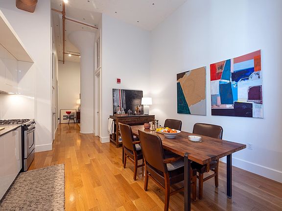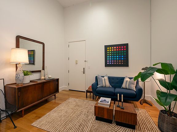 Located on the 4th floor of the highly sought-after Canco Lofts, a converted American Can Company factory originally constructed in the 1920s and converted in 2008 to luxury condominiums, this loft features 855 sf of living space and soaring 14ft ceilings with impressive 11ft tall windows and Southern exposure. There is one spacious bedroom, one beautifully outfitted bathroom, an open concept living /dining area, a bonus den / foyer and 2 walk-in closets & storage throughout the home. The loft is further equipped with a stunning integrated kitchen, Central AC, washer / dryer combo and hardwood floors. Steps to Journal SQUARE PATH, MANA Contemporary Museum, art studios, cafes and parks, the neighborhood in which Canco Lofts stands is filled with arts, culture and remnants of the industrial past. Offering 10,000sf of amenities which include common lounge, basketball court, screening room, 4000sf gym, Peloton & yoga room, sundeck, dog park & spa and children's playroom, the full-service building with a 24hr doorman service is an impeccably maintained, friendly community. There is also shuttle service to the PATH M-F and parking for a $250 fee in the garage. There is a tax abatement until 2039 and a summer pool membership for a fee.