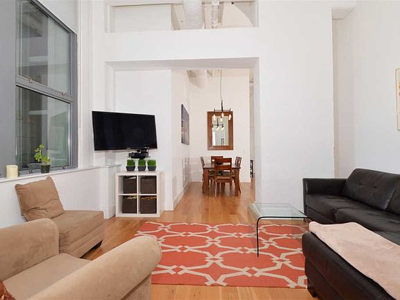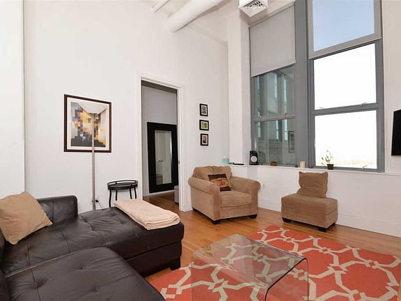 Journal Square's gem of the high end residences! Own a piece of the hottest growing area in Jersey City. Beautiful and rare to market 1+den, 2 bath format located in the highly coveted, full amenity Canco Lofts building featuring a 24hr concierge, shuttle to PATH, fitness center, bicycle storage, BBQ grill area, pet park, children's play center and screening room. Large den format can be used as a 2nd bedroom, office, nursery, etc. The enormous master bedroom and 14ft ceilings add to the spacious 1250+ square footage to complete the loft feeling. Newly upgraded Bosch washer/dryer in unit. Over 20 years left on the original 30 year tax abatement. Prime location for easy access to all highways and short walk to PATH train. Garage parking spot can be rented for $200/mo. Public open house this weekend 12/3 and 12/4. Sat 11:30-1:30 and Sun 12noon-2pm.