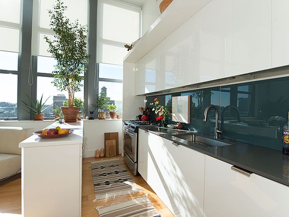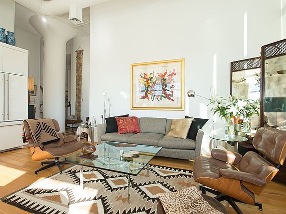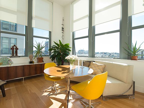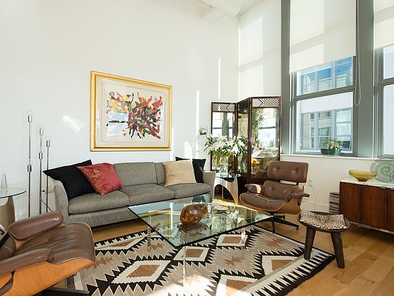 Amazing sought after/south west exposure, 5th fl corner two bedroom loft featuring 14ft ceilings, soaring 11ft windows and an abundance of sunlight all day and sunsets in the evening! Residence is well appointed with wide plank oak floors, custom kitchen island,Hunter Douglas window treatments, custom closets and decorative lighting in both bathrooms! Also included is a private deeded storage closet. Amenities feature a 24 hour concierge, private shuttle, fitness center and newly renovated residents lounge