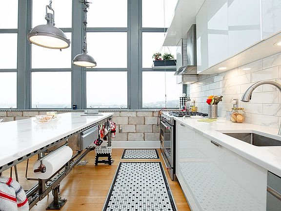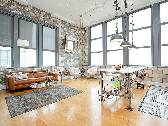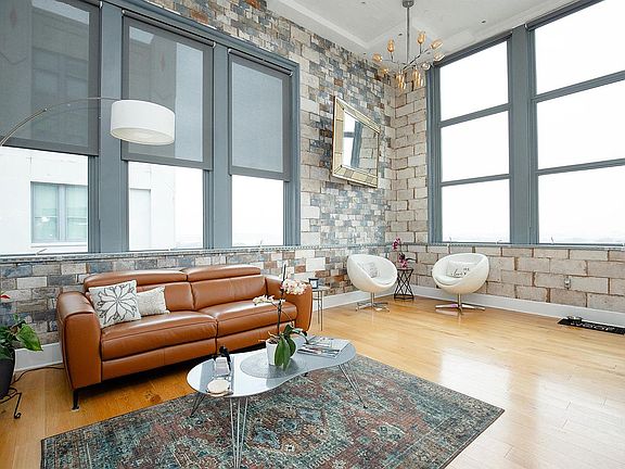 Extremely rare 2 bed, 2 bath corner unit with Manhattan views, located in the highly coveted, full amenity Canco Lofts building. The 14ft ceilings and massive windows flood the unit with natural light, adding to the spacious 1300 square feet to complete the loft feeling. Beautiful upgrades and finishes that include lighting, kitchen features and window treatments. The building features 10K sqft of amenities incl. 24 Hour Doorman, State of the Art Gym (Peloton, Life Cycle), Basketball Court, Newly Renovated Screening Room along with Community and Party Rooms featuring Sonos Sound System w/3 zones, Conference Room w/wifi, Outdoor BBQ, Dog-Spa, Outdoor Lounge Area, shuttle to JSQ PATH and NJ Transit. Prime location for easy access to all highways and short walk to PATH train. Ask about our private, salt water pool membership availability. Garage parking spot can be rented for $250/mo.