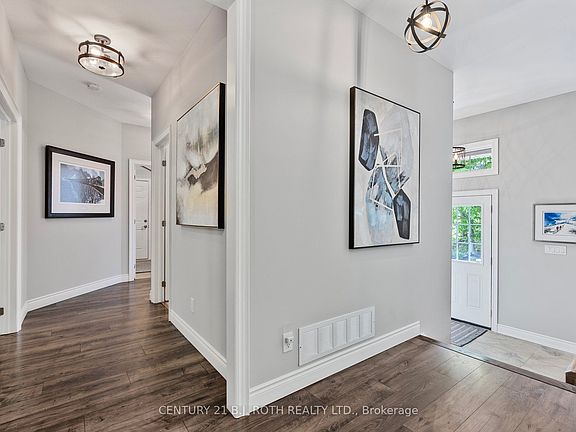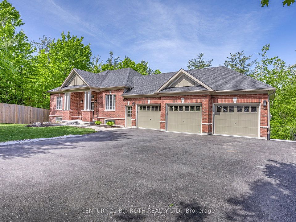 Elegant 3-Bedroom Bungalow in Tranquil Sugar Bush! Nestled in a serene, wooded enclave near Horseshoe Valley, this stunning bungalow combines modern design with natural beauty. The open-concept layout features 9 ceilings, abundant light, and a cozy living room with gas fireplace and stone accent wall. The gourmet kitchen offers custom cabinetry, modern lighting, ample storage, and a walkout to the deck for outdoor dining. The primary suite includes a spa-inspired ensuite with soaker tub, heated floors, walk-in closet, and direct deck access. Two additional bedrooms provide comfort for family or guests. Set on a mature treed lot backing onto a trail, enjoy a fenced yard, expansive deck, covered hot tub, outdoor fireplace, and stamped-concrete patio. A 3-car garage and large driveway provide ample parking. Minutes to Horseshoe Valley skiing, golf, and hiking. Experience the perfect blend of luxury and nature!