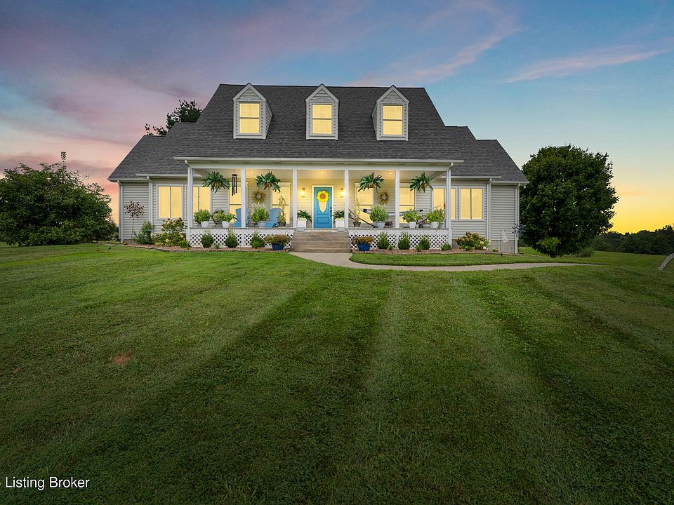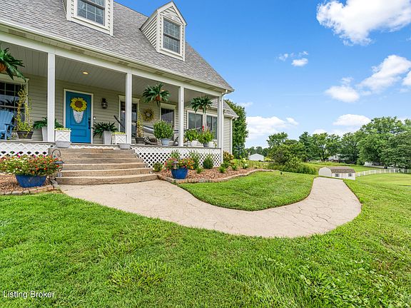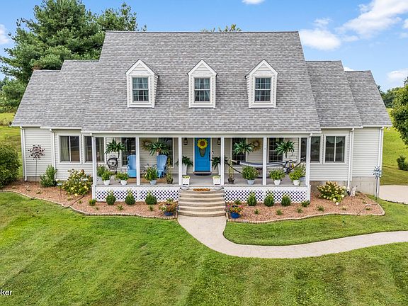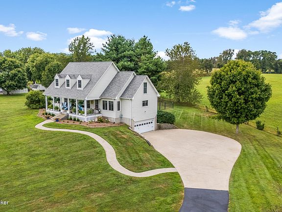 This gorgeous Cape Cod has breathtaking views of rolling hills and open spaces visible from every window. The expansive covered porch invites you to relax and enjoy the serene landscape. Inside, you'll find tall ceilings and an open-concept floorplan that creates a welcoming atmosphere.