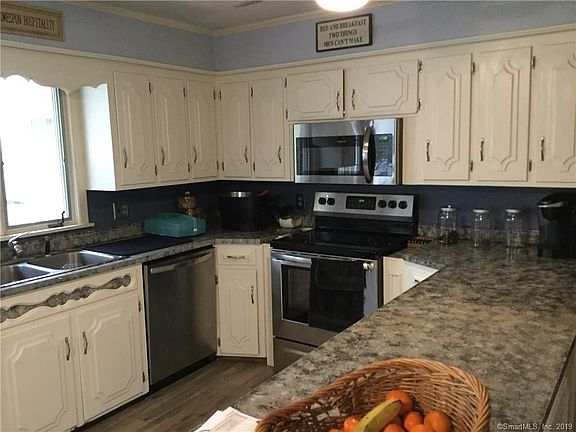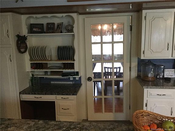 Welcome home to 50 Dorrance Street located in the Danielson section of Killingly, CT. Situated in a quiet neighborhood on a dead-end street, this home appears modest but welcomes you in to reveal a unique and expansive interior. The gem of this home is the large, open concept living room with a fireplace and French doors which open to a screened in patio, this space begs to be the focal point of holidays and family gatherings. A full kitchen with stainless steel appliances, plenty of cabinet space, and an eat-in area overlook a surprisingly large and private back yard. On the main level are three large bedrooms, including a master suite with wood stove and double closets, making for a cozy retreat. A spacious finished lower level with separate entrance offers an opportunity for a workshop, home business, or possible in-law apartment. Add the formal dining room and a detached two car garage with power, and this house makes a perfect home for any size family.
