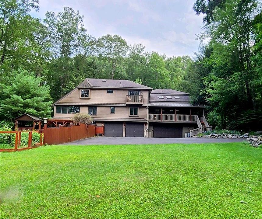 This spectacular home is loaded with extras and is ready for its new owner. The open and flowing floor plan features soaring ceilings, skylights, and many custom features. The layout is both flexible and practical & designed for both family living and entertaining. There is plenty of space for family/guests. Several rooms can function as a home/office with privacy. There is an in-law apartment with a private entrance, kitchen, and living space that is oil heated (not electric. The exterior of the house is tranquil and inviting. A custom-built "Pond-House" is a peaceful retreat with a cathedral ceiling and deck overlooking a pond. The exterior also features a large tool shed, a fully fenced-in deck with a private entrance to the in-law apt, wrap-around porch & garden area. Ample parking for everyone with the 3 car garage. Inside this beautiful home, you'll enter the "Great Room" with a gas fireplace and a double set of french doors. The expansive kitchen features include 2 pantries, a gas cooktop, beverage fridge. The Master Bedroom suite features a balcony that overlooks a private yard with views of the pond, a large walk-in closet, a built-in bookcase & a staircase to a private loft. The master bathroom features a double sink, jacuzzi tub, and oversized tile shower. There is an adjacent room off the Master bedroom that can function as a nursery, exercise room, or an additional home office. 50 Dry Bridge Rd has so many unique & charming features