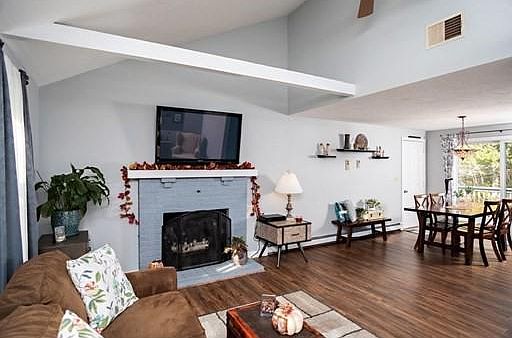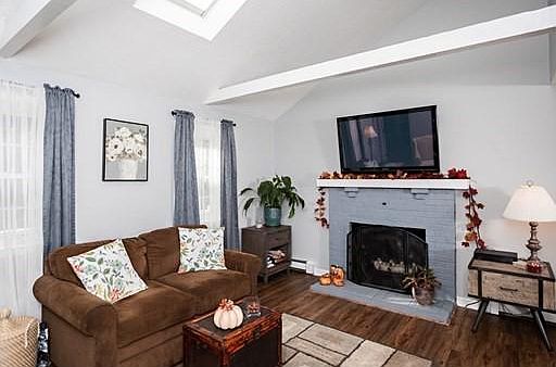 - Liv Dscrp: Cable Hookup, Fireplace, Main Level, Open Floor Plan, Skylight, Ceiling - Beamed, Flooring - Vinyl, Ceiling - Half-Vaulted