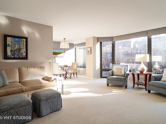 Awesome opportunity at a compelling price! Enjoy the beautiful unobstructed views from many NEW windows in this tastefully done split 2 bedroom/2 bath property. Floor to ceiling light floods your expansive living room/dining room overlooking Bellevue which has been decorated by a top designer. Updated baths feature plenty of storage and both provide walk-in showers. Multiple closets through out plus a huge pantry and extra storage around the Miele in unit washer/dryer. Hardwood flooring is provided in the 2nd bedroom, all hallways and the gracious entry. ALL NEW HVAC UNITS (2018). Financially sound HOA with high reserves. Full service amenity building provides an on site property manager, 24 hr door staff, beautiful roof deck, party room, exercise facilities and valet parking. Fabulous location with access to Mag Mile, the Lake and all the necessities of enjoying life in the Gold Coast! PET FRIENDLY!