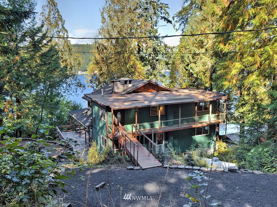 The picture postcard views of the amazing Hood Canal & Olympic Mtns won't get old from this spacious home. There's plenty of room for all your friends to come visit while enjoying the abundant oysters & clams off your beach. Open concept Kitchen/DR/LR featuring a ceiling open to a huge loft & FR on the upper level. Woodstove nestled into a brick alcove-great for those cooler months! Seller used the loft as the primary bdr w/office - great space & views. Bathrooms are brand new. Watch the amazing sunsets from your deck or while gathered around the firepit. Daylight bsmnt is unfinished but offers shop space & roughed in bathroom.