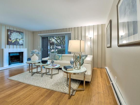 Gorgeous 1st floor condo, Conveniently located, Minutes from downtown, Close to shopping, restaurants, Caltrain & light rail, Commuter's delight !! Easy access to major Freeway 85, 101 & 237, Stevens Creek Trail, and Walk to Whisman Park & Hetch Hetchy trail, Open floor plan. Spacious Living room with fireplace & built-in cabinets and large sliding door leading to the patio with view of community pool, mature trees and a tranquil pond. Updated kitchen with granite countertops & SS appliances including electric range/oven, microwave, refrigerator & dishwasher. Spacious bedroom with carpet flooring & large closet, Updated bath with shower over tub, tile flooring & LED lighting. Living room, Separate eating area and Kitchen w/ bamboo flooring throughout. Patio with a separate storage closet. Assigned covered parking with a separate storage cabinet, plus plenty of guest parking. New LED ceiling lights & recessed lights, New interior paint throughout, Make it your home sweet home.