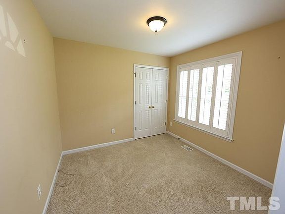This home has everything you need, on a private wooded lot in desirable Pigeon Point. Features 1st floor MASTER SUITE & additional 1st floor bed, great for In-laws. Open floor plan family room has hardwoods, gas fireplace and access to screened porch. 2nd floor bonus room & 3rd bedroom w/jack & jill bath. Extras included: fridge, plantation shutter, WIC, dual vanities & garden tub in Mst. Separate dining room which could be 4th bedroom, partial fenced yard. Plenty of storage. Minutes from Wake Forest.