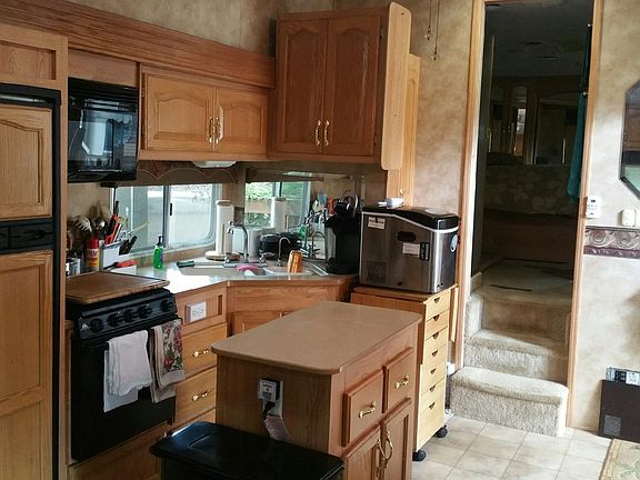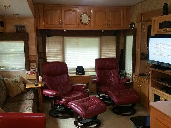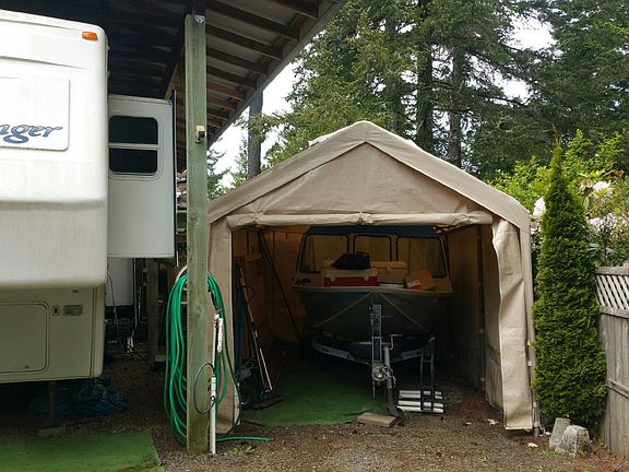 Turn-key luxury, ready to enjoy today, needs nothing. Beautiful brick covered patio area, super nice 2003 5th wheel with tip outs and all the amenities; TV, fridge, couch, chairs, master bedroom, this is a must see! Also bunk house with half bath and loft area, garden shed, carport tent, landscaping, fenced!