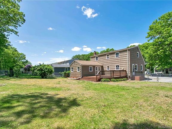 Beautiful & tastefully updated large cape style home, offers 3 bedrooms, 1.5 bathrooms, attractive oak hardwood floors, new roof, new windows, freshly painted walls, generously sized deck overlooking a fenced yard. First level features charming and spacious living room with stone fireplace, formal dining room, half bath, lovely kitchen with breakfast bar & stainless steel appliances, laundry area and first floor bedroom. Second level leads to two bright & nicely sized bedrooms and a full bathroom. Lower level includes a partially finished basement that is perfect for an added living area, entertainment or workout room. Easy access to highway, shopping, and restaurants. GREAT value! A perfect place to call home sweet home! Move in ready!
