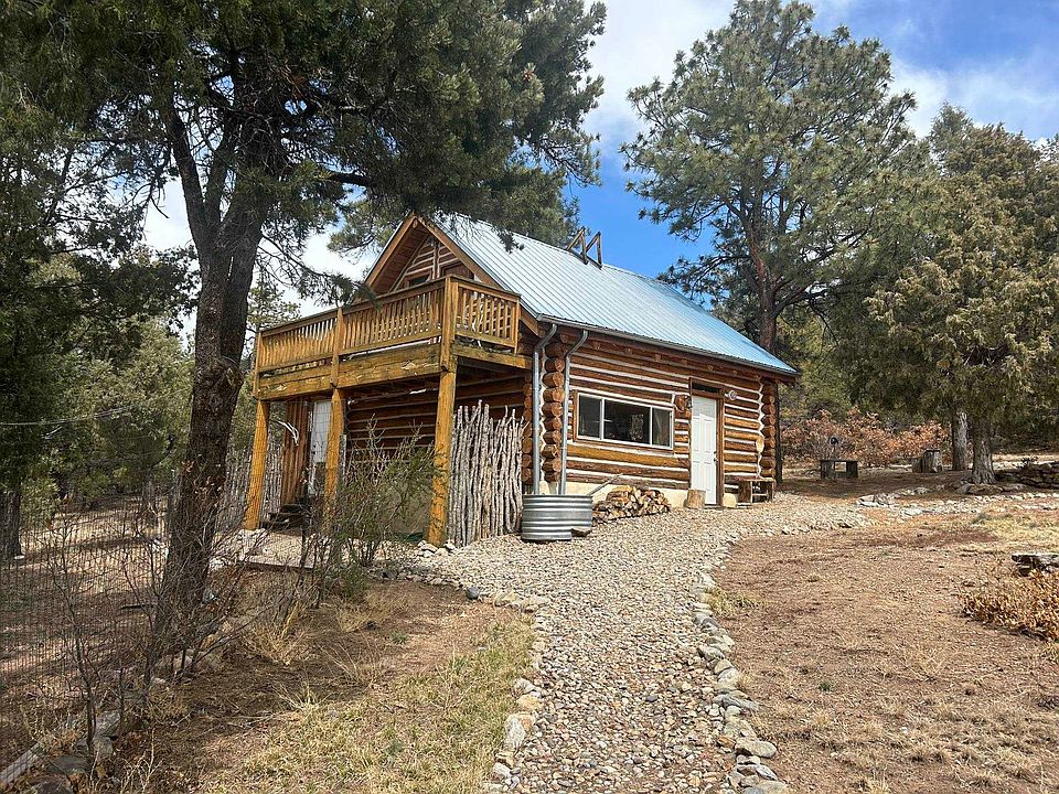 Rustic Hand-Hewn Cabin in Pinabette - Tucked into the pristine wilderness of Pinabette in Questa, NM, this charming hand-hewn log cabin offers a rare opportunity to own a true mountain retreat. Set on 2.0 wooded acres that directly border Carson National Forest, this rustic hideaway is surrounded by natural beauty, wildlife, and boundless adventure. Crafted with timeless character, the cabin features rich wood textures, an open living space, and a cozy loft ideal for sleeping under exposed beams and stargazing through the windows. Upstairs west facing deck offers panoramic views of sunsets, Sunshine Valley, San Antonio Mountain and Ute Mountain. From the moment you step inside, you ll feel the warmth and authenticity of a true high-country escape. Exposed logs, natural wood floors, and handcrafted built-in touches create an inviting feeling. Sun-filled living area with picture window brings the outside in. The cabin is 600 sq.ft including the sleeping loft + a 180 sq.ft storage room located on the northside. Currently the cabin has no formal bathroom or plumbing fixtures. The property does have a 395 ft. private domestic well with exterior spigot. High-speed fiberoptic allows you to stay connected. Step outside and you re immersed in nature. Frequent visitors include elk, mule deer, foxes, turkey, bobcats, black bears, and the occasional eagle or hawk soaring overhead. This is a place where mornings begin with birdsong and evenings end with the rustle of wildlife in the trees. Whether you're relaxing on the upstairs deck, exploring nearby trails, or enjoying a peaceful evening around the cozy woodstove, this property invites you to slow down and reconnect with the land. Located just 35 minutes from Taos, yet near the Rio Grande Gorge BLM National Monument, Latir Wilderness, and northern New Mexico s outdoor wonders this is more than a cabin. It's your basecamp for adventure and your escape from the everyday. A perfect retreat to customize and make your own!