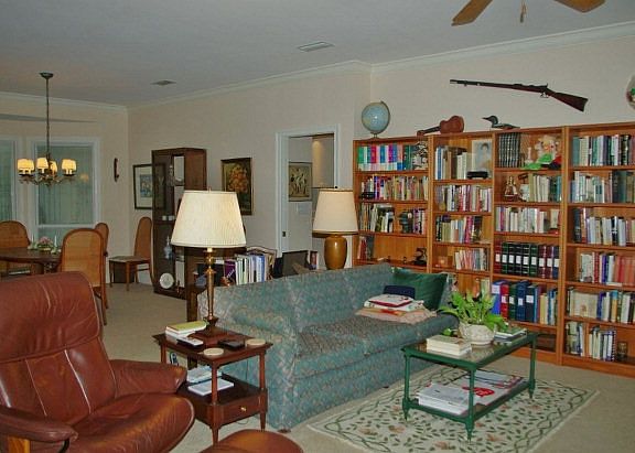 3/2 1/2 one owner setting stately on 2 manicured lots with mature oaks, 17 x 14 screen porch overlooks a pond and beautifully manicured mature landscape. Home is built with Native Cypress board and Batten siding. 18 Pella large windows with enclosed blinds in each one. The kitchen has amply cabinets and newly installed quartz counters. Triple bay windows in both the great room and dining room.