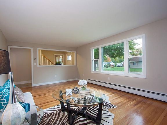 Interest rates are on the rise, lock in a low rate while you still can! Every step throughout this large luxurious home located in a desired area of 16 acres will wow you with custom craftsmanship. Upon entering the front door you are welcomed by a large living room with shiny hardwood floors, natural light from the picture window, and a fireplace perfect for those cold winter nights. From the living room you can see right into the kitchen with brand new stainless steel appliances, cabinets, and counters. The first floor also has 3 bedrooms (all with hardwood floors) and a full bathroom. Upstairs is just as amazing with 2 bedrooms and another full bathroom. One of the bedrooms upstairs is approx. 23x12 ft. No need to go to the park, this home also comes with a large backyard that is perfect to entertain company or for your kids to play in year round. If all of this wasn't enough for you, the home also comes with an attached 1 car garage that connects right to your enclosed porch/home.