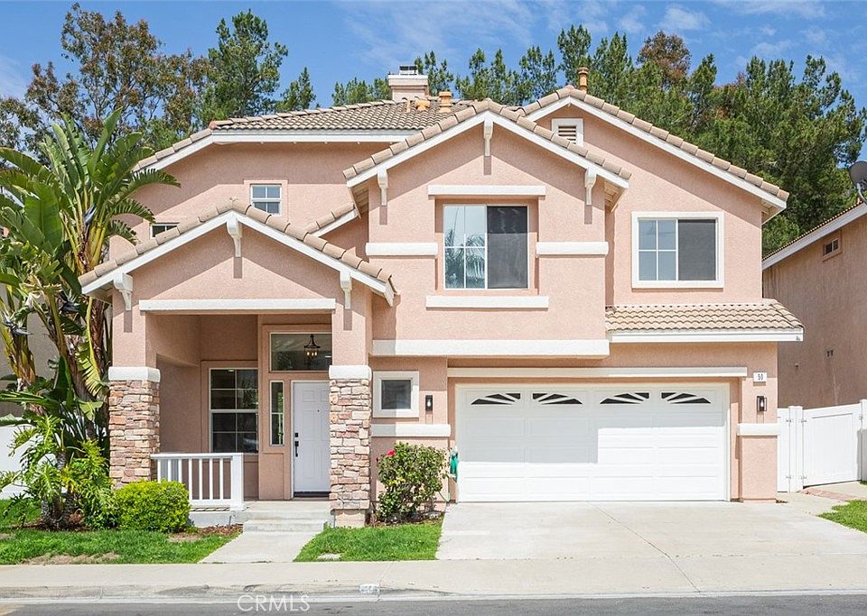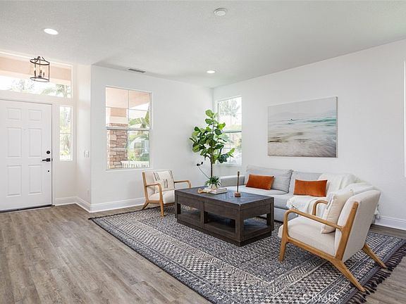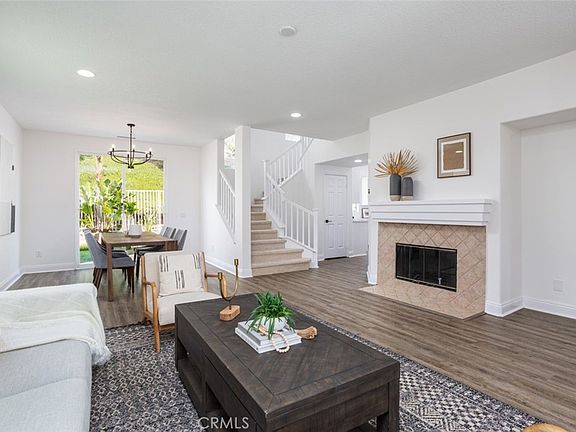 Charming, newly updated home featuring 3 bedrooms - plus an oversized loft - and 3 bathrooms in the amenity-rich community of Foothill Ranch. The light and bright main living area boasts new flooring throughout, fresh paint, updated light fixtures and cozy fireplace. The redesigned kitchen has freshly painted cabinets, new quartz countertops, custom backsplash, new stainless-steel appliances, oversized sink with new faucet framed by a large picture window overlooking the backyard, new cabinet hardware and farmhouse light pendant. The formal dining space is ideally located next to the kitchen, fashionably framed by a new statement chandelier. Up the newly carpeted staircase with designer light fixture, the second level opens to a sprawling loft ideal for an additional lounge area, game room, guest quarters, home gym or study space. The airy primary retreat features vaulted ceiling, new carpet, new ceiling fan and a large walk-in closet. The attached primary en-suite boasts dual sinks with new quartz counters, on-trend pendant lights, new mirrors and hardware. Down the hall, two additional bedrooms with new carpet, fresh paint, new closet doors and new ceiling fans. The hall bath has been updated with new countertop, mirror, light bar, faucet and hardware. Enjoy the low-maintenance yard backing to trees and landscape, ideal for privacy. Additional updates include new AC condenser, exterior paint touch ups, new exterior lights and updated landscaping. Attached two car garage with built-in storage and direct access into the home. Located in a top-rated school district, walking distance to Foothill Ranch Elementary. As a member of Foothill Ranch, enjoy community privileges which include a resort-style pool with spa, newly renovated clubhouse featuring kitchen, study area and games, a skate park, Borrego Park with playground and hiking trails. Conveniently located near target, grocery stores, fine dining and transportation.